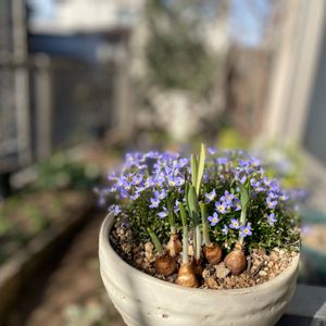 ポットから鉢植えにしてお外に出したヒナソウ…スノードロップと寄せてます🌱 お日さまの陽ざしを浴びてずいぶん濃い色になりました まるで別物😅楚々とした淡い色が好きだった…のに💦 色の種類があるかと思っていたのだけど、日当たりの良い子は濃い色で咲くようです まだ閑散としてる早春のお庭 それでもクリスマスローズや実生ビオラさん達が少しずつ花芽をあげて咲いてきています☺️