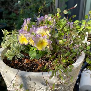 冬のクレマチス アンスンエンシスが咲きはじめました お花が咲くとやって来るのがメジロたち 見てると可愛らしいのだけど、昨日みたいにビオラの花まで突いてしまうと困るなぁ💦 今年はまだ見かけてないけれど… 日中の事はわからないので、ビオラ被害を思うと来てるのかも😅 かわいい姿が鳥に荒らされませんように🙏