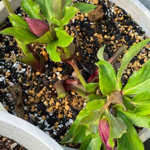 今日は暖かい日ですね 今朝鉢から湯気がたってる感じで、どのお花も十分お水をもらって葉っぱが生き生きしてました😊 我が家のクリスマスローズ、みなさんのpic.見てると遅いのだけど、ようやく2番手の蕾が上がってきました💓 これはななちち印の一重のパープルにグリーンが少し入る子だと思います☺️ お花が少ないこの季節、早く咲いてくれないかな