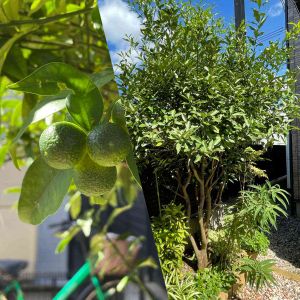🏷ふぞろいの果実たち 2021.09.20撮影 自宅北側に一坪程の花壇の真ん中を キンカンの木があります。 キンカンは子供👶の誕生記念樹木で 市役所から貰いました😀 左側は色づく前のキンカンになります🧡💛 そして、MYチャリ🚲😂