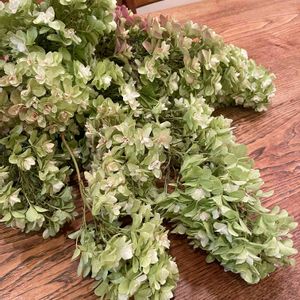 カットしたカシワバアジサイ 今年はきれいなグリーンになった後、少し紅く染め上がったように色が入ってきれいです💓 ドライになってなお可愛らしい😊