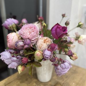 ① この冬1番濃い色で咲くジュビリーセレブレーション あと2つ蕾がありますが、週末にかけてどんどん寒くなるらしいからカットしてお部屋で咲かせようかな ② こちらも今年1番濃い色で咲いてる彩 春はもっと明るいボルドー 冬は深みのあるディープボルドー 香りも深いです ③ フレンチレースと思えないくらいアプリコットピンクがのってきたフレンチレース ④ お迎えして1番きれいに大きくさいてくれたローズドラジェ 茶系のバラが増えました ⑤ ぷっくりと膨らんで咲きはじめた伊吹 開いてきたら中はパープルがのってくるのかなぁ〜と、ワクワクしています 明日明後日は今年最後のお休みです つるバラの剪定誘引しようと思うけど、どうなりますか😊