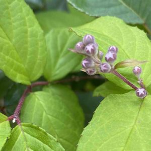 ウツギの蕾がひょっこり顔を出しました... 更紗空木だったか、桜空木だったか、 梅花空木だったか、、🤔
