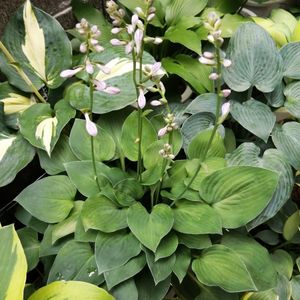 ギボウシ ビーチボーイのツボミ。 この斑も好きだし花も大きい。 隣でパールレイクが花柄を上げてますが小さいツボミを数で勝負。