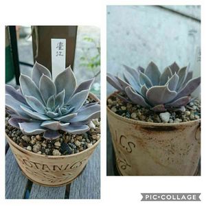 ムカーシ買った多肉の本の中で,見かけた澄江. 在ったら迎えようと思ってたけど,まさか,20年近くなって出会うとは.. パープル系のちょっとビロードッポイ葉のエケ. 子株で,生育期のせいか,淡いパープルの新葉を葺いて,若々しい. 秋には,生長した,エレガントなパープル葉姿を見たいのだけど..