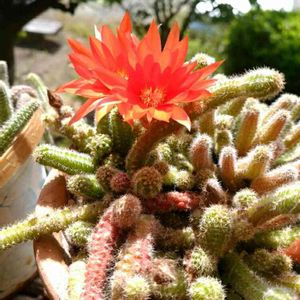 冬に屋根から落ちた雪が直撃して瀕死状態になった紐サボテンの白檀。 生き残りの何本かが花を咲かせました。 本体はボロボロなのに花はゴージャス🧡✨ 香木として有名な常緑樹の白檀は、爽やかな甘い芳香が特徴ですね。 でも、紐サボテンの白檀の花には芳香性はないようです。 今日は昨日とは違うカメラアプリを使って📸しました。 なかなか方向性が定まりません。 芳香性と方向性をカケてますよ~💦