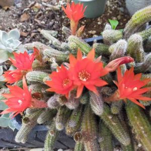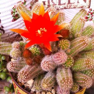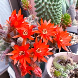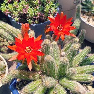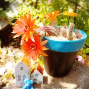 白檀のサボテン🌵サン。.:*ฺ✤ฺ オレンジのお花が咲きました ୧(๑›◡‹ ๑)୨ ♡ 去年、少~しモリモリ山になっていたので…… 今年は、3つの鉢に株分けしました。.:*ฺ✤ฺ また増えてね~❁٩(„❛ ֊ ❛„)❁