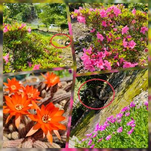 今日のお庭💕 ツツジかサツキ😅 ビャクダン マツバボタン 咲いてました😍 ちび🐆もいます😽 多分わからないので赤マルつき😆 ↖遠くの白いけむりはお隣の果樹園の消毒👋