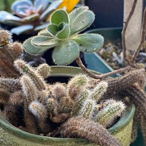 白檀1鉢を昨年tanikuちゃんのリメ缶に植え替えしてあげたらモリモリになり花芽?だと思うけどボチボチ付けてる🤗 また、植え替えしてない🌵はギューギューで根詰まりしてるかも? 花芽見っけ👀👍 何でも小さいな苗からだと2年〜3年しないと花咲かないのかなぁ? 此れからサボテンも花が咲くのが待ちどうしです🪴🌸🤗👵🏼