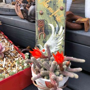 ❀*. こちらは良く咲いてくれます ポロッと親株から外れた 🌵の花芽が開花です まだ根は張っていないけれど 咲きました🧡✨🧡✨🧡 水曜日🌙*゚おやっとさあ☔
