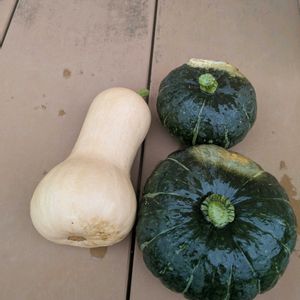1️⃣苗から育てて 茎もコルク状になった 坊っちゃんかぼちゃ🎃 種から育てて黄色くなった バターピーナッツかぼちゃ🥜 第1便収穫しました〜 2️⃣未熟バターピーナッツかぼちゃ🥜 暑くなりそうですがら、 塩分水分とって適度に体を冷やしましょうね👌