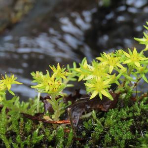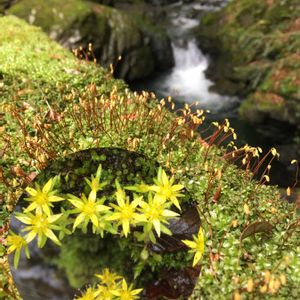 ヒメレンゲ(姫蓮華) ベンケイソウ科の多年草で山地の水が流れる岩場に生えています😊 根元の葉が仏様の蓮華座🧘♀️に似ていることから名がつきました😃 黄色い星形の小さな花なんです🤗