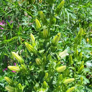 こんにちは👋😃 紫に次いで白のカンパニュラも、下から咲き始めました。 行灯支柱の枠を、越えた花茎も、ありましたが、 ほとんどが、支柱の中で、咲きそうです。 あとはピンク花だけになりました。 順次投稿します。 来年も、育てます。