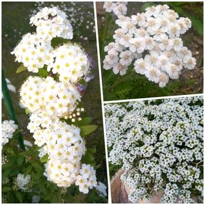 おはようございます☺️ 庭の白い小花を集めてみました💕 左から、昨年植えたコデマリ、ノコギリソウ、年末からずっと咲いているアリッサムです🎶 清楚な白花、風にゆらゆら揺れて、涼しげです🎶🎶