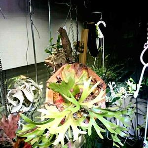 中庭のビカク部、チランジア部は、部員が増え、随分賑やかになりました。 GSの皆さんみたいにゆとりを持って格好良く飾りたいけど、今は引っ掛けるので精一杯 もうすぐ横に塊根部が引越してくるので、さらに賑やかになりそう(;´Д`A
