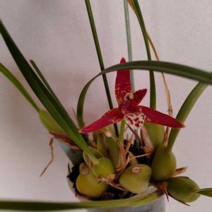 マキシラリア・テヌイフォリアです。 夏の間はどんだけお水をあげてもシワシワだったバルブが、最近ふっくらしてきて嬉しいのです。