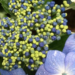 この時期GS上もあじさいが花盛り。 なかでもこの紫陽花がお気に入り。 真ん中のプツプツが、イコマ製菓のレインボーラムネみたいで美しい。