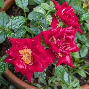 お疲れ様でした。 鉢植え バラ 真っ赤で可愛い小さなお花です。