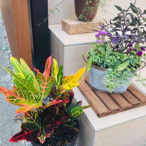 6月ごろに作った、夏の寄せ植えです。鮮やかな色のクロトンさんと一緒に並べると、パッと華やかになって綺麗でした。