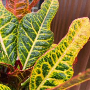 もう一つクロトンを紹介します。 こちらは、葉の形も変わってますが、 色も特徴があるエクセレントです。 先ほどのリュウセイとは同じ種類とは思えませんね。