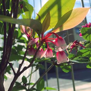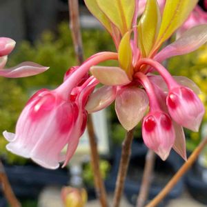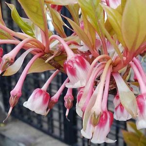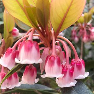 つやつやしたベル型の かわいいお花🌸 なんて木だか わかりますか? 教えていただきました☺️🌸 ホンコンドウダンツツジ 『ピンクシャンデリア』 ツツジ科ドウダンツツジ属