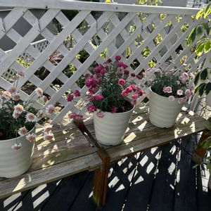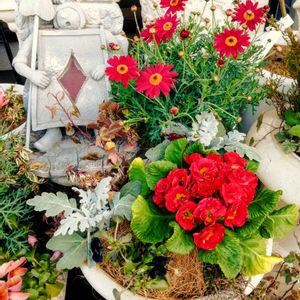 赤いエリアの花達♥️ PWマーガレットが3ポットで550円だったのでバブルガムブラストとマルスレッドを新たに迎えました🥰🌿