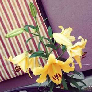 昨年植えたユリの花。 私の身長くらい伸びて、こんなに大きな花が咲きました‼️ まだ蕾があるのでしばらく楽しめます🙌