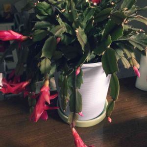 一昨年購入したシャコバサボテンさん。 昨年は花芽が落ちてしまって、もうダメかと思っていましたが、数は少ないですが大っきな花が咲いてます。 葉っぱもペラペラだったのが、寝室からキッチンカウンターに引っ越して元気になりました。