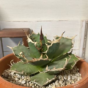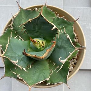 アガベ チタノタ 厳龍白棘です🌵😍✨ 5月から少〜し真ん中が開いてきました😁👏