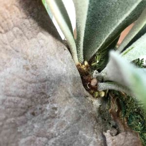 先日株分けしたビーチー、やはり向きがおかしかったので付け直しました。 小さすぎる子株と、成長点が密集していて正解がわかりません。 仰向けに置くと、上向きでいい感じなのですが…(次の写真に続く)