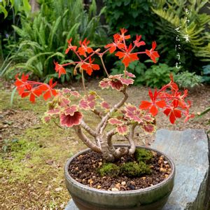 株元が木化し 葉が少なくなり でも花は咲いてくれる♡ 中々大きくならず おまけに鉢を割ってしまい そこで 植え替えした姿です; フウロソウ科 ペラルゴニウム(和名:天竺葵)