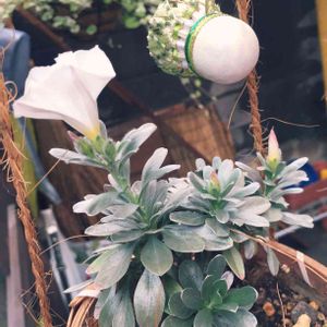 統一感‼️ 鉢も化粧石も植物本体のメタリックな表情に合わせてオールシルバーで統一させてあります❗️ ヘクチア sp (W32cm)