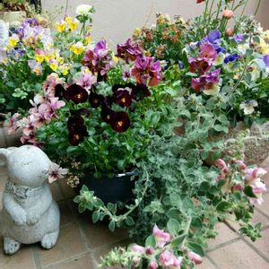 こんなに飛び出して、 やっと咲いた、 ツル性金魚草.。*゚+.*.。 寄せ植えなんだから、 もう少しビオラさんの 近くで咲いてくださいよ^^; でも皆んなに間に合って くれて、(*´▽`人)アリガトウ♡