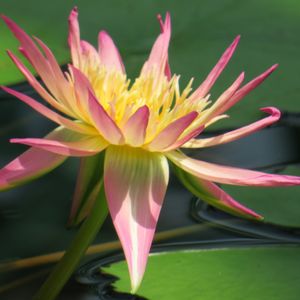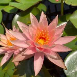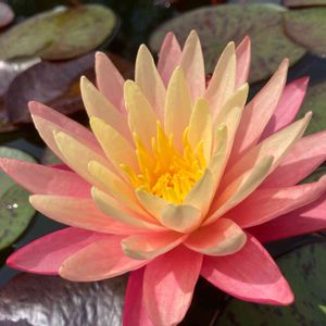 熱帯睡蓮品種vol.150はいったはず(笑)⁉️ 💛💗ダーシー・プレスネル💗💛昼咲種🌸 花びらが非常に細長く、大きく花を開く為、水面上でも大変目立ちます。葉はグリーンで、ごくわずかに茶色のドットが入りますが色合いが薄い事もあり一見すると分かりません‼️ この品種は初めて見た時はデイグローの小さいコと思ったのは秘密ですよ!😊聖地✨以前は品種札がなくて!今年やっと分かった品種の一つです‼️😄
