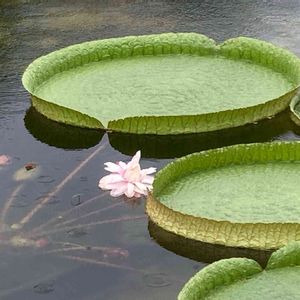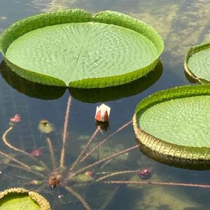 夜咲熱帯スイレン品種🌸番外編② 💗パラグアイオニバス💗 南米南部アルゼンチン、パラグアイ、ボリビア等に分布する1年草です。非常に大きな円型の葉を水面に浮かべます。2日咲きです🌸 特徴〜耐寒性が強い! 萼には棘がない! 葉壁が高く外側はグリーン。 オオオニバスに比べて開花スピードは遅いです。 子供が乗るイベントで使うのがコレ‼️⇦葉に栄養を与える為に蕾は切る‼️ picは初日白花🌸19時前後です! 比較的どの植物園に一株はあります!