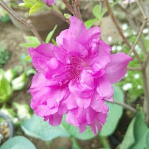 我が家の上空は霧雨の曇り空☁ 鼻がツーンとするくらいヒンヤリしっとりした日は やはり「ツツジ日和✨」 だなぁと😊 でも写真のこの八重は昨日お迎えしたばかり笑 一重同色は我が家にもあり、店頭で「旬は終わりです」とばかりに奥へしまわれていましたが洋風仕立て!?が気に入り、しかも三難あるスペースにピッタリの予感💓 的中🎯早速活躍中です👏