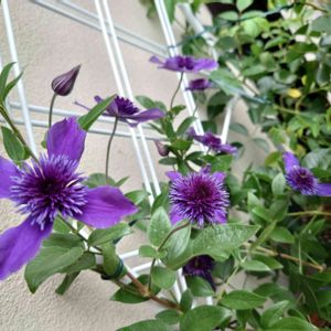 2024/5/5 こどもの日🎏 インテグリフォリア系クレマチス アフロボーイ 流星より一足早い開花。 玄関前の小さなスペースに 一緒に誘引。 楽しみだな♪