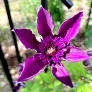 クレマチス アフロボーイ アフロって🤣 もじゃもじゃの頭のアフロと勘違い😅 エレガフミナの血筋が入ってるらしい お色はダークなパープル💜 2年目 花芯のもじゃもじゃが可愛い✨️ これは花後も楽しめる👏🏻 フミナとなんとかコラボできたけど 同じダークパープルでお互いが目立たないという…🤣🤣 白万重と植えて3種コラボを夢見ていたけど、上手くいかないもの🙄😆 白万重は上の方で絡み合ってる ニゲラがいい仕事してくれた! アフロボーイを引き立たせてくれてる🤭