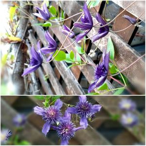 おはようございます😊 春に紹介出来てないクレマチス この子達はお花が咲くのも遅かったのですが、そのかわり、少しずつずーっと咲いてくれてます💕 ➡️だけ大輪であとは半分のお花です♪ ⬅️のアフロボーイは上の花びらが散って下のようになり長く楽しめます💜