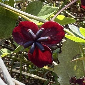 2025.4.12 Saturday 🌤️ 春うらら 風が少し強めに吹いているので、桜吹雪を浴びたくてお出かけしました。 good timingにはならず、桜の花びらはチラチラと… 上ばかり見ていたので下を向いてみたら、駐車場の植え込みに可愛いお花がたくさん咲いてました。 これは、木通! なんと魅力的な花色 雌雄同株ということなので、 これは雌花 2枚め3枚めに雄花が写ってます。 一つ見つけると、次々と見えてきた👀! 赤ずきんちゃんになりそう〜