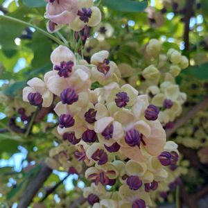 こんにちは🤗 今日は時折小雨がパラつきましたが、陽が射す時間帯もあって過ごしやすい一日でした☁️🌦️🌥️😄 今日のお花アケビ❇️💮🌸❇️ 春に我が家の庭で咲いていたアケビのお花です❇️🩷💜❇️ 可愛らしくて大好きなお花です💞