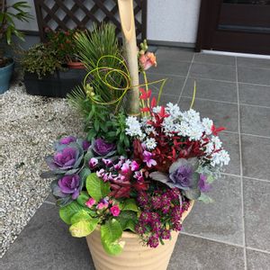 お正月用の寄せ植えを3週間程前につくりました。ジュリアンと金魚草がイマイチですが......
