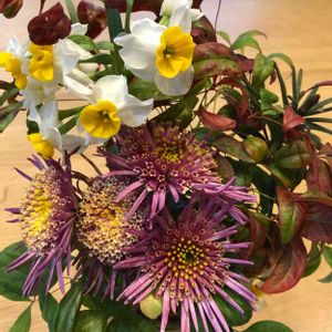 我が家のスプレーマムです。白い花だったんですが、寒さで色付きました😊