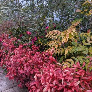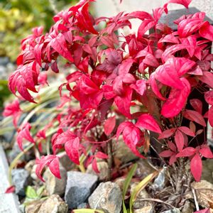 おたふく南天🌿 おはようございます☀ おたふく南天の葉っぱが真っ赤です。庭の差し色として映えます。🥰 🌿🌸✨🍃🌿🌸✨🍃🌿🌸✨🍃