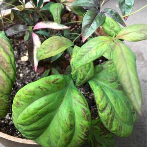 先月、新芽が出た🌱と喜んでた南天 あっという間に巨大化して、違う植物みたいになった💦 色もマダラに赤みが残ってて、なんかコワイ😱