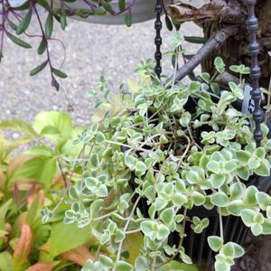 置き鉢だと垂れてきて、他の鉢を隠しちゃう~💦てことで、 ハンギングに変更。 葉っぱに白色があると涼しげで良いですね🎵