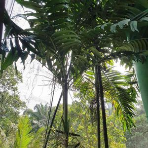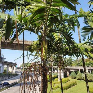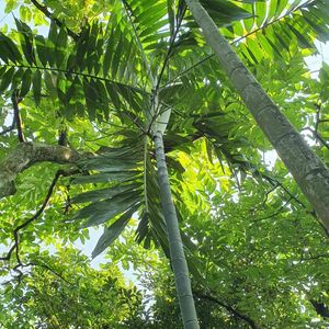 どなたか教えてください! 逆光で見えづらいですが、このヤシの種類がわからなくて悩んでます。東南植物楽園にあったもので、実はマニラヤシの実と形も色もそっくりですが大きさは半分ぐらいで、実だけ見たらユスラヤシっぽいですが、ユスラヤシの割にはスマートで葉数が少なくクラウンシャフトが白っぽい感じです。どこかの投稿で見たような気がしますが‥あんまり日本で見ないような気がします。 Veitchia属でしょうか?? ※ @Ao さんと @Dioptase さんの回答によりPtychosperma macarthuriiと判明。 ありがとうございました🌴🌴 macarthuriiかeleganceで迷ってたところ、葉軸がマニラヤシのようにもっと湾曲してるのがeleganceのようです。