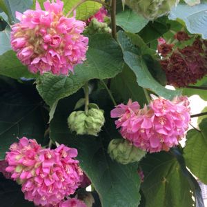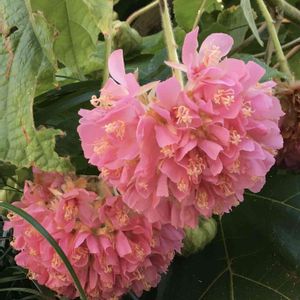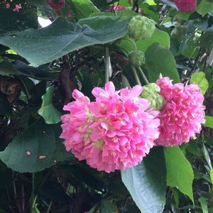 学名のドンベヤウォリッキーより 英名のピンクボールの方が可愛い💕 今日、2年前の投稿にコメントをいただき嬉しくて数日前に撮ったばかりの今年のもUPします。 アフリカ マダガスカル原産で品種も多く、花はソフトボール大で垂れ下がります。