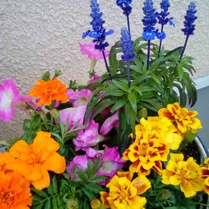 ブルーサルビア、マリーゴールド、ペチュニア、オレンジ色のマリーゴールド。 買いました(・∀・) 綺麗!