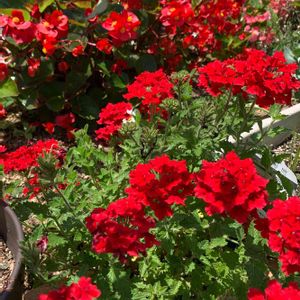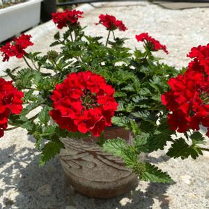 スーパーベナ 挿し芽にして冬越ししたスーパーベナ。 3号ポットから4.5号のスリット鉢に鉢増ししたら一気に咲き始めました。親株はハダニが酷くて苦労して処分😅。この子達は去年の親株よりたくさん咲いてる気がします。